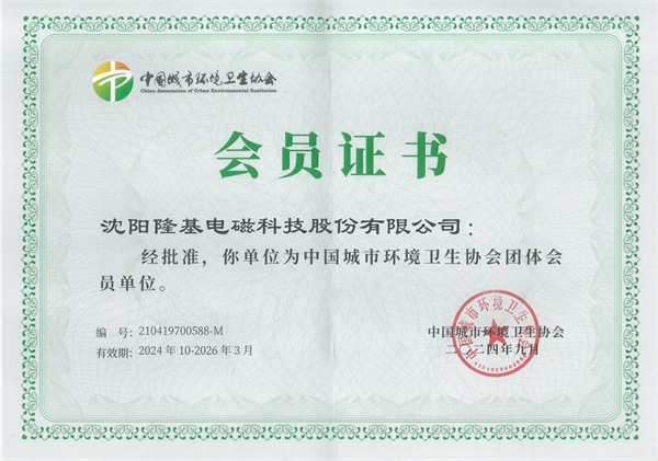 沈陽隆基電磁科技股份有限公司正式成為中國城市環境衛生協會的會員單位。 2024-10-17