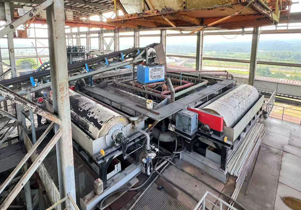 該設備在核心參數上以硬核表現樹立了大型化、綠色化新標桿:設備筒體尺寸達到1500mm(直徑)×6000mm(筒長),樹立了全球筒式磁選機大型化的新尺度,開啟了超大型磁選機的新時代;其礦漿處理量高達1200m³/h,干礦處理量達到400t/h,強大的單機處理能力直接減少了設備臺數與占地面積,簡化了工藝流程,從系統層面降低了能耗與運營成本,體現了集約化生產的綠色內涵;同時,磁滾筒表面磁感應強度≥4000Gs,為大規模礦漿穩定高效分選提供了可靠保障,高效分選意味著更高的資源回收率和更少的尾礦排放,從源頭提升了資源利用效率。